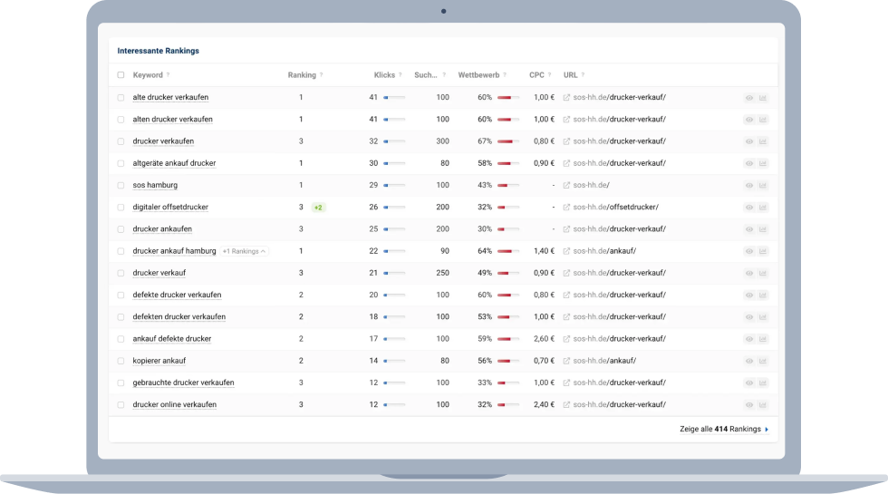 Nachdem die ersten Anfragen über die Webseite angekommen waren, wurde entschlossen, den SEO-Kanal zu stärken und neue Keywords zu erschlagen. Bis heute erweitern wir die Inhalte, beseitigen technische Fehler, kümmern uns um die Wartung der Webseite und optimieren nach einem klaren Ziel: Mehr Anfragen über die Webseite dank SEO.