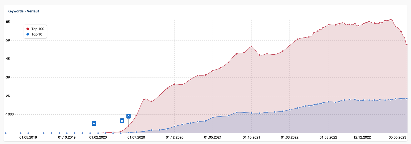 Hier können Sie zum Beispiel sehen, wie sich unsere Backlinks über die Jahre entwickelt haben: