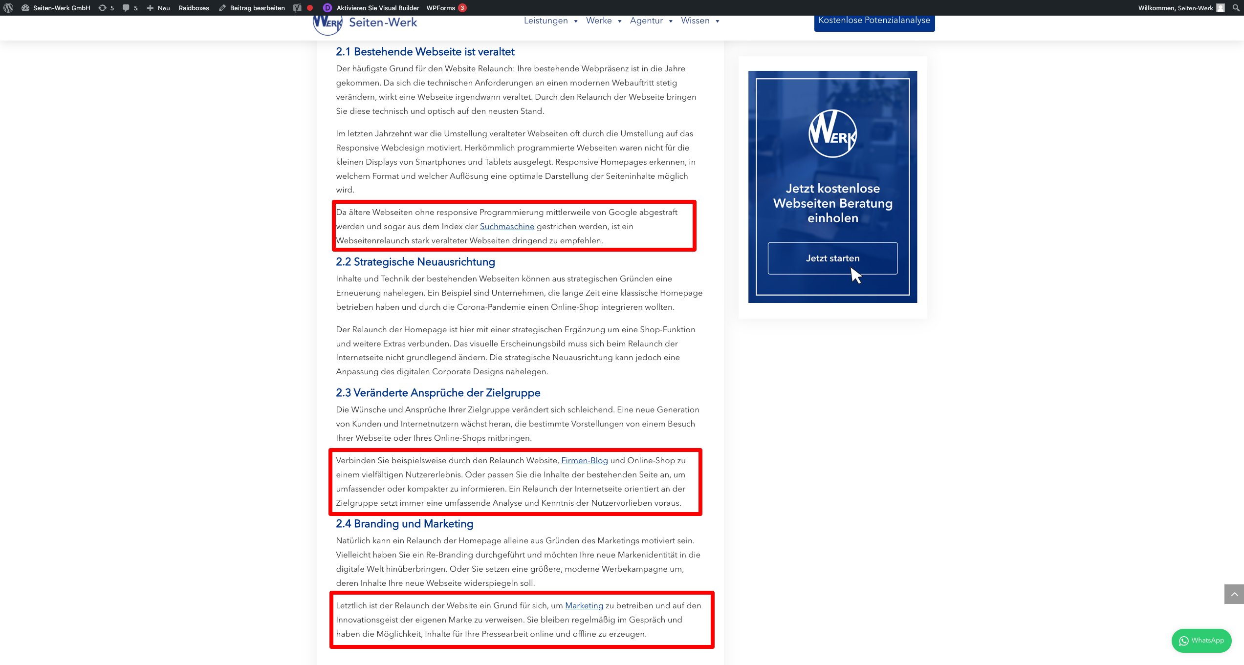Hier ein Beispiel eines Artikels von uns, wo wir in einigen Absätzen relevante interne Verlinkungen hergestellt haben: